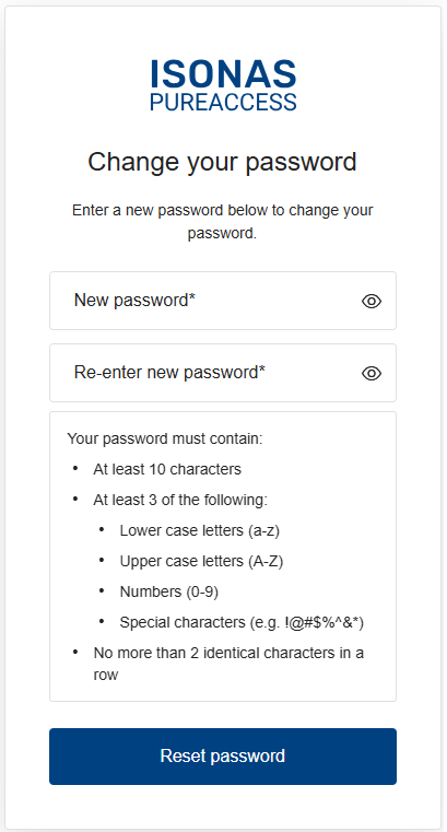 If you do not already have web access configured for a tenant in Pure Access, it will ask that you create a new password: