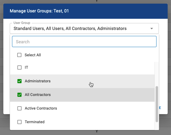 - To change which user groups the user is enrolled in, select the User Group drop down and select/deselect user groups.